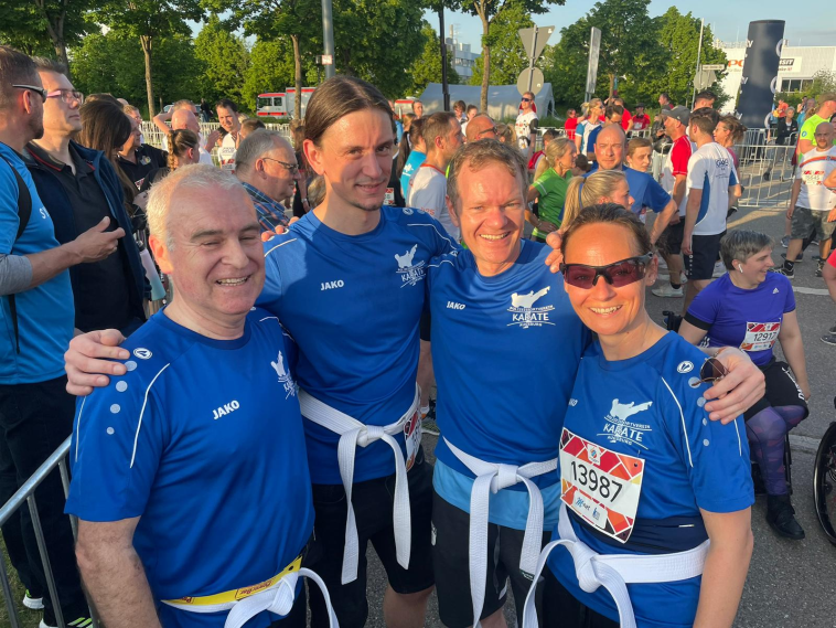 Ein Teil unseres Karate-Teams nach dem Start: (v. l. n. r.) Herbert I., Simon G., Andi K. & Carina U.